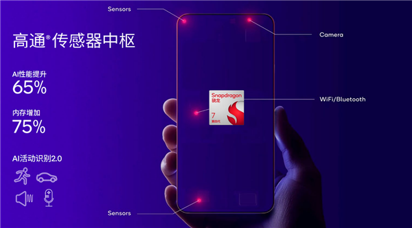 得益于高通传感器中枢,削减卡顿,最高速度达5.8Gbps,骁龙7系列定位高端,
